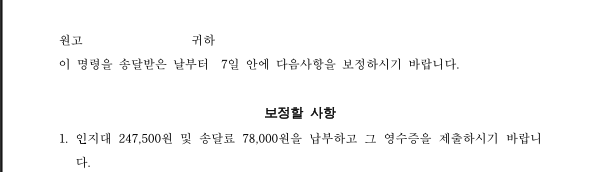 저희도 바로 인지송달료 납부를 의뢰인분이 하지 못해서 이러한 보정이 나왔습니다.